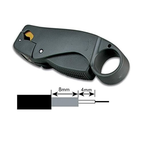RG6 Coaxial Cable Stripper has an adjustable blade depth for different coaxial cable thickness.